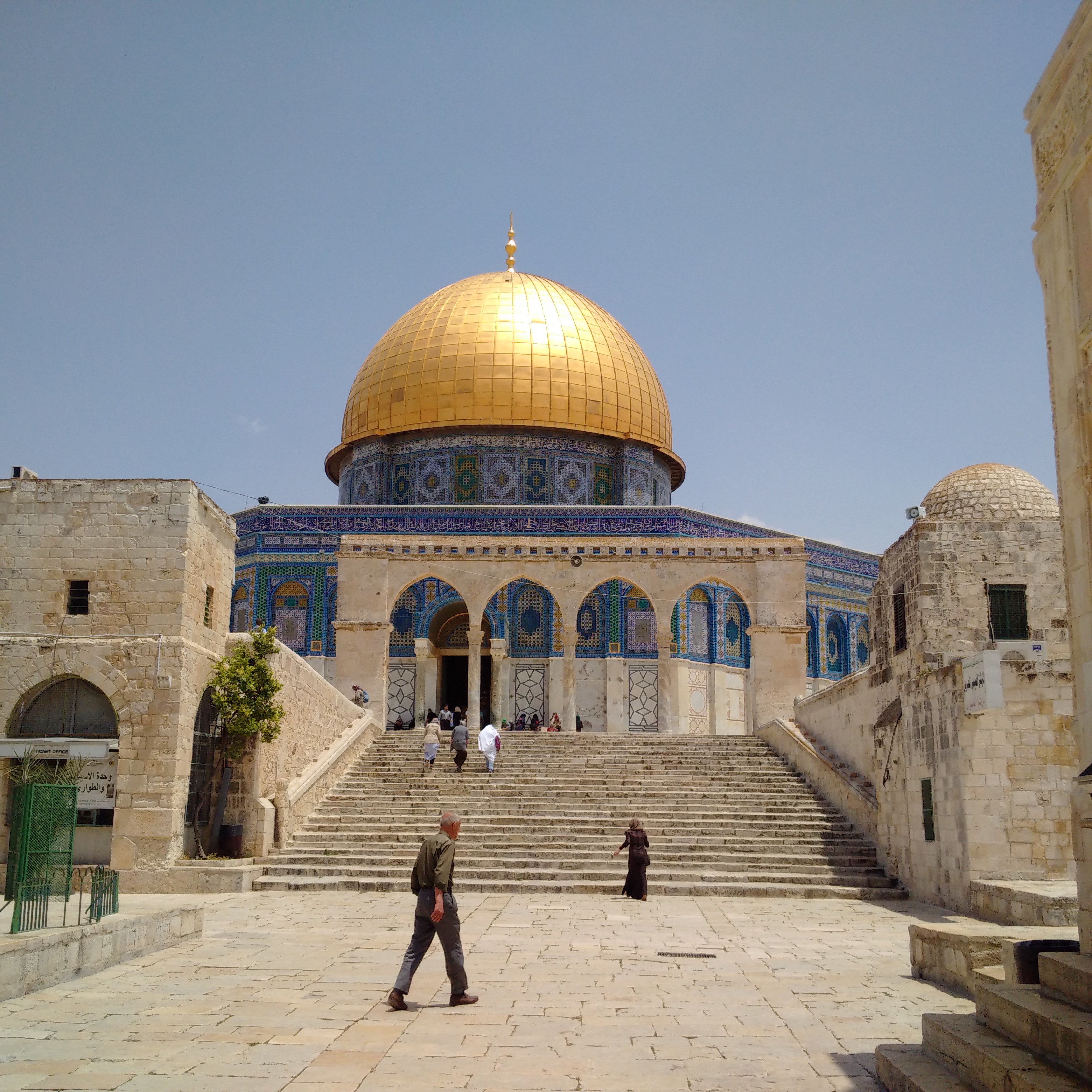 Dome of the Rock mosque atop Temple Mount (al-Masjid al-Aqsa), where Mary, Jesus & Muhammad all worshipped God, according to Islamic tradition. Muhammad was brought here by Gabriel, in one of the many magnificent meetings between these two great Spirits. Photo (c) Usama Hasan, May 2015